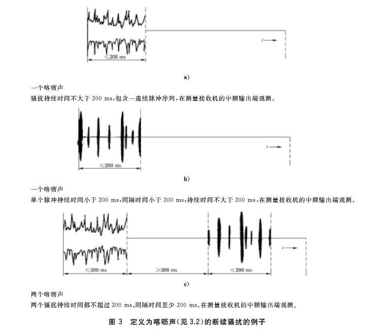傳導騷擾測試根據信號的連續(xù)性,分為連續(xù)騷擾和斷續(xù)騷擾。斷續(xù)騷擾是指家用電器、電動工具、醫(yī)療器械、通信產品等類似產品,在設備啟動或停止的瞬間所產生的電磁干擾,其值明顯大于連續(xù)騷擾。斷續(xù)騷擾又分為非喀嚦聲和喀嚦聲。在標準GB4343.1-2018中對喀嚦聲的定義如下: