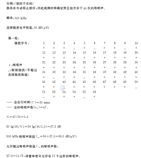 當上述情況測試不合格時,我們再去考慮是否所有的喀嚦聲持續(xù)時間和分布符合喀嚦聲的定義(GB4343.1見3.2),因為只有這種情況下才對斷續(xù)騷擾使用放寬的限值。